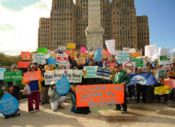As part of the effort, Food & Water Watch, WNY Drilling Defense, the Western New York Peace Center and other local community organizations convened in Niagara Square in Buffalo to discuss fracking’s impact on the Western New York region.