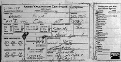 | Alleged forged rabies vaccination certificate. This one Barrett made out to
