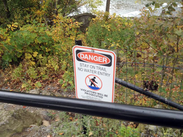 Great scenic locations have been fenced off with danger signs.
