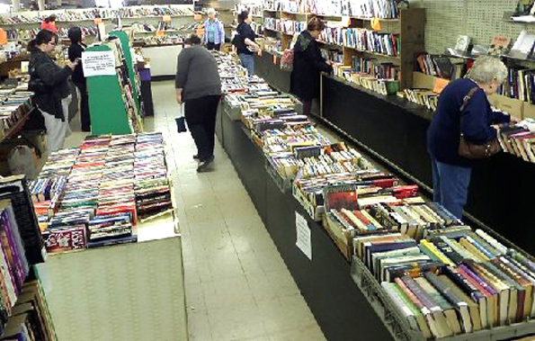 Many regular customers donate their previously purchased books back at the next book sale, as they fill up their bags with more books to read.