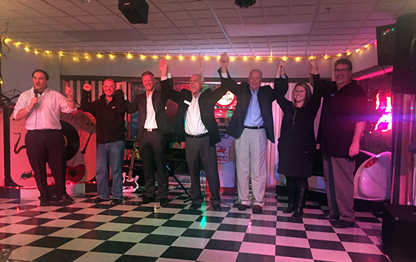 Left to right : Vince Sandonato, Dave Zajac, Rob Bilson, Jim Jastrzemski, John Accardo, Danielle Restaino and Kenny Tompkins